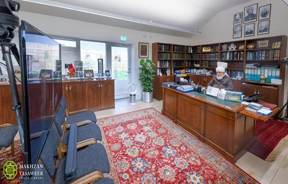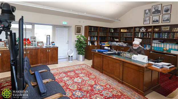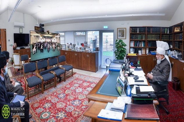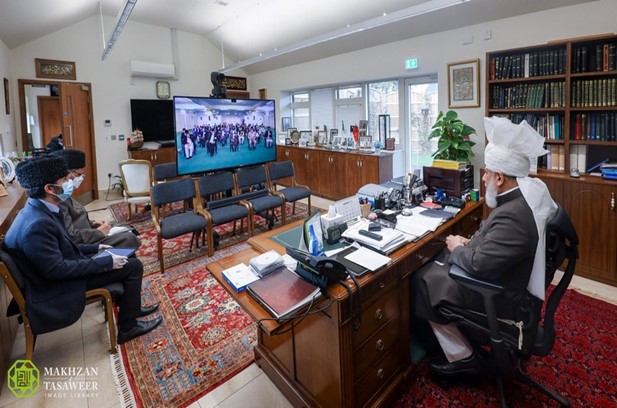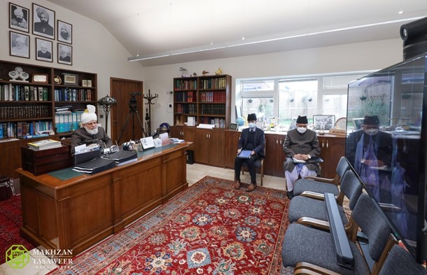 Zijne Heiligheid zat de ontmoeting voor vanuit zijn kantoor in Islamabad, Tilford terwijl de Waqf-e-Nau leden aansloten vanuit de Ar-Rahmat zaal in Al-Hidayah Moskee complex in Jakarta.